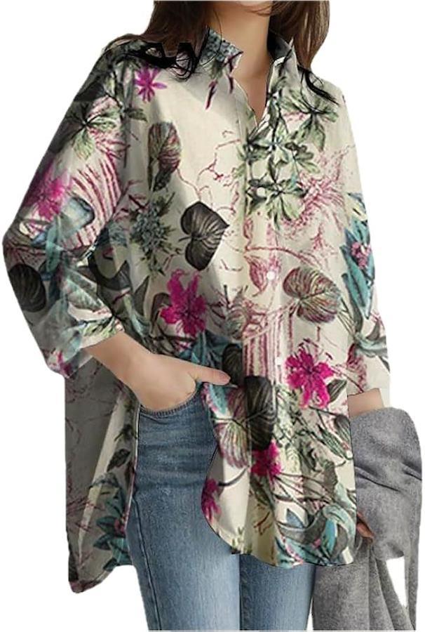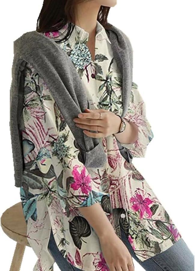 「南国リゾートを思わせる華やかなデザイン」 大胆に描かれた大輪の花や瑞々しい観葉植物が、コーディネートにリゾート感をプラス。