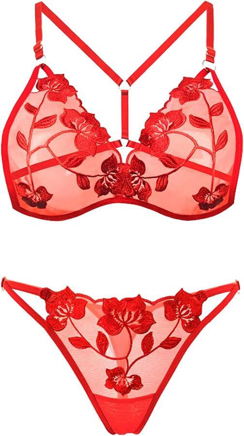 柔らかいメッシュ生地に施された美しい刺繍が、肌の上でふわりと浮かび、女性らしい曲線をより魅力的に引き立てます。