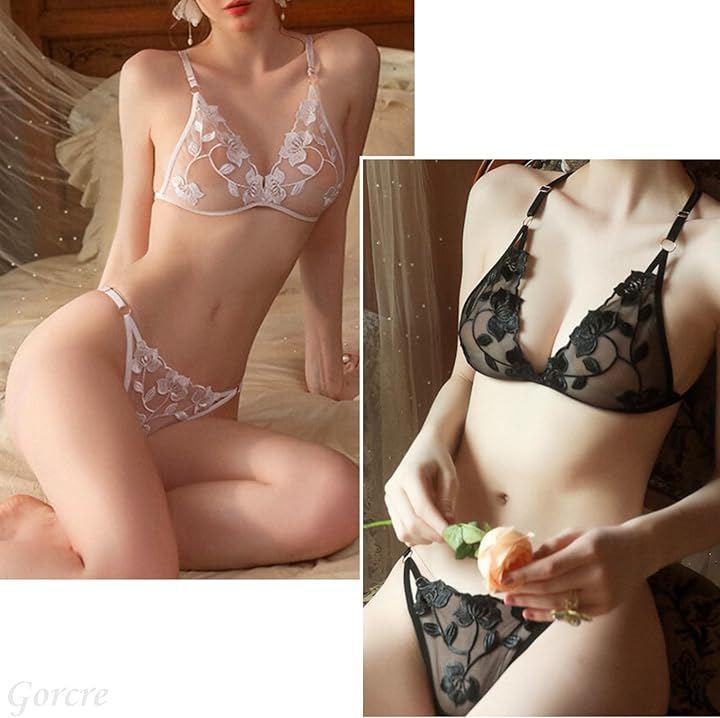 柔らかいメッシュ生地に施された美しい刺繍が、肌の上でふわりと浮かび、女性らしい曲線をより魅力的に引き立てます。