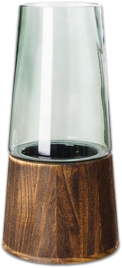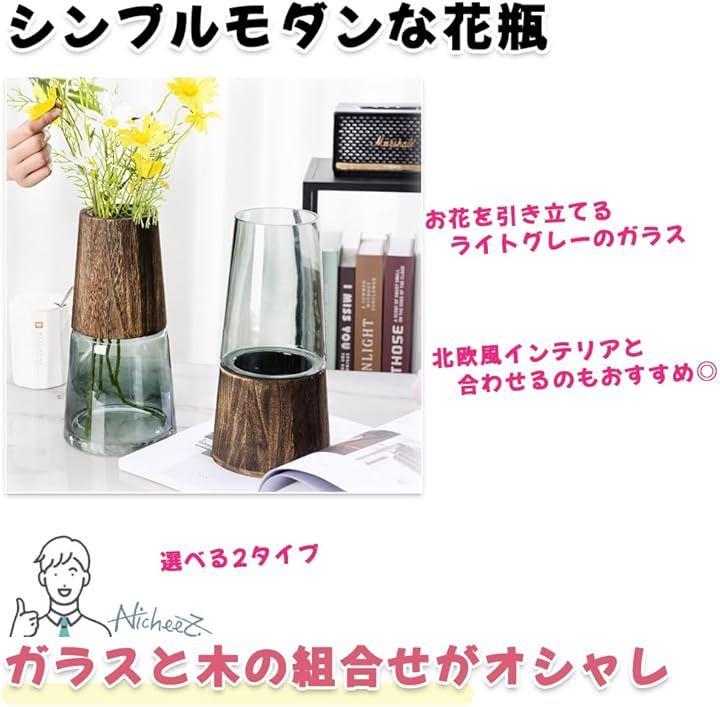「商品内容」 フラワーベース(ガラストップ/ウッドトップ) 材質:ガラス/木 サイズ:上部直径/約9.5cm 下部直径/約14cm 高さ/約28cm