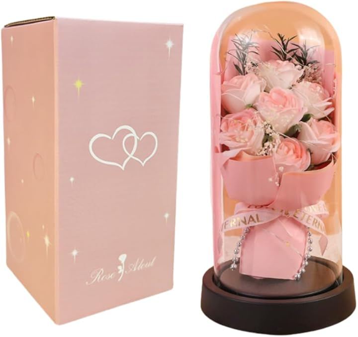 Flower Lights, Everlasting Flower Bouquet, Artificial Roses, LED Lights, Battery Operated, Perfect Gift for Her Birthday, Mother's Day, Anniversary, etc.