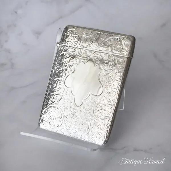 ヴィクトリアンからエドワーディアンにかけて訪問時のカードを入れるための銀製のケースが多く製作されました。メールや電話がない時代には訪問時に連絡先を記入したカードを持参しました。相手側が不在の際には裏側に用件やメモを書いて執事に手渡しました。優雅な時代が思い起こされます。