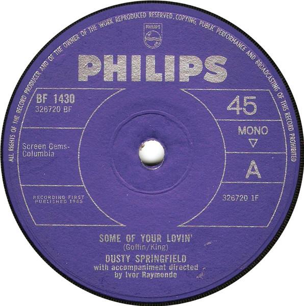 ・アーティストDusty Springfield・タイトルSome Of Your Lovin'・レーベル・型番Philips BF1430・フォーマット7インチレコード・コンディション(盤)良い (VG+)・コンディション(ジャケット)プレインカバー(元ジャケット/カバー無し)・コンディション(帯)オビなし・特記事項【盤に短いヘアライン】