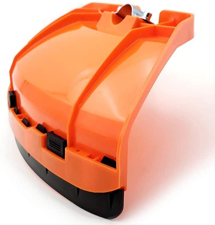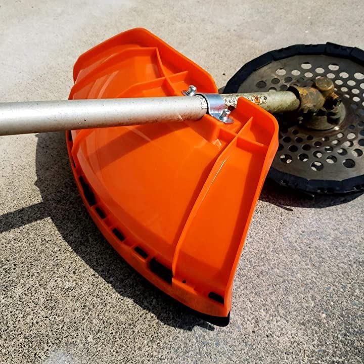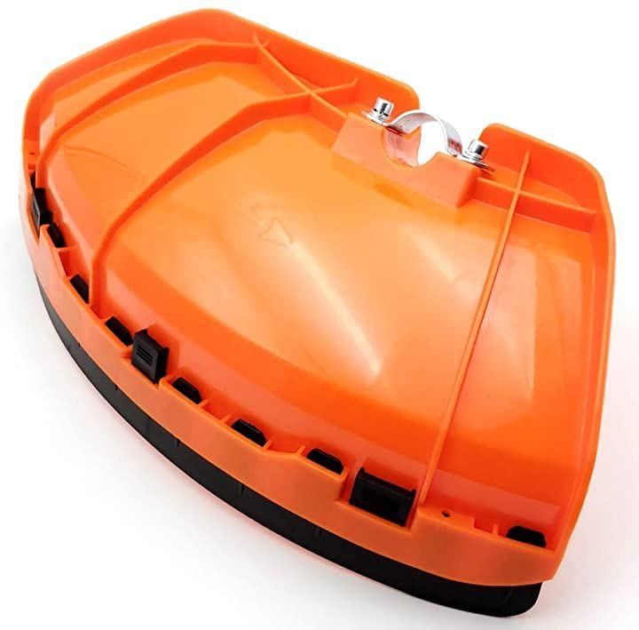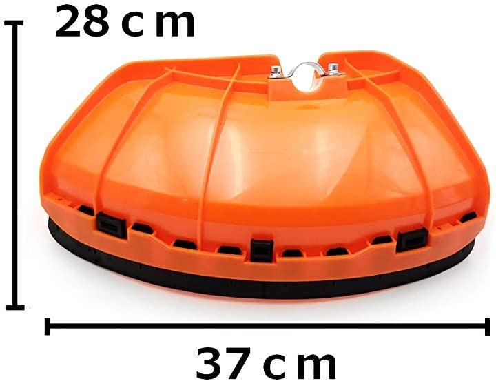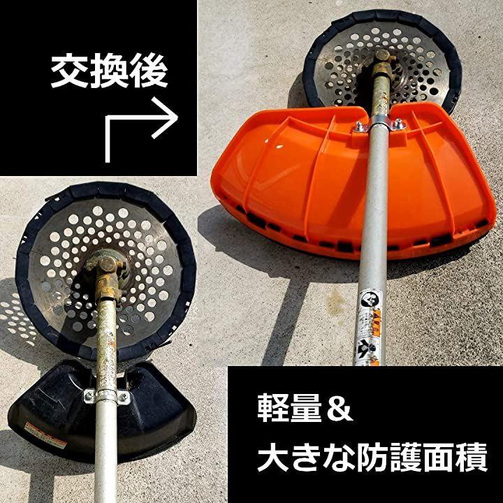 ・軽量&大きな防護面積で、草刈作業中に飛び散る小石や草、金属片などの飛散を防止する草刈り機のカバーです。
