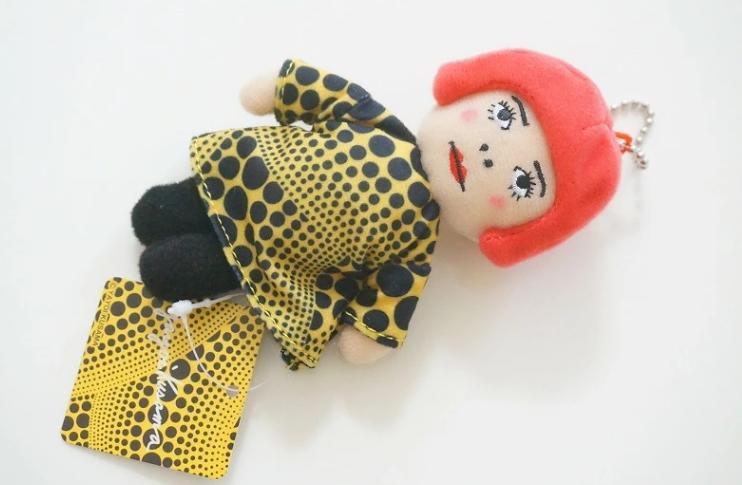 YAYOIちゃん プラッシュキーホルダー vol.3です。草間彌生さんのミニぬいぐるみにキーチェーンが付いていて鍵やカバンにつけても可愛いです。