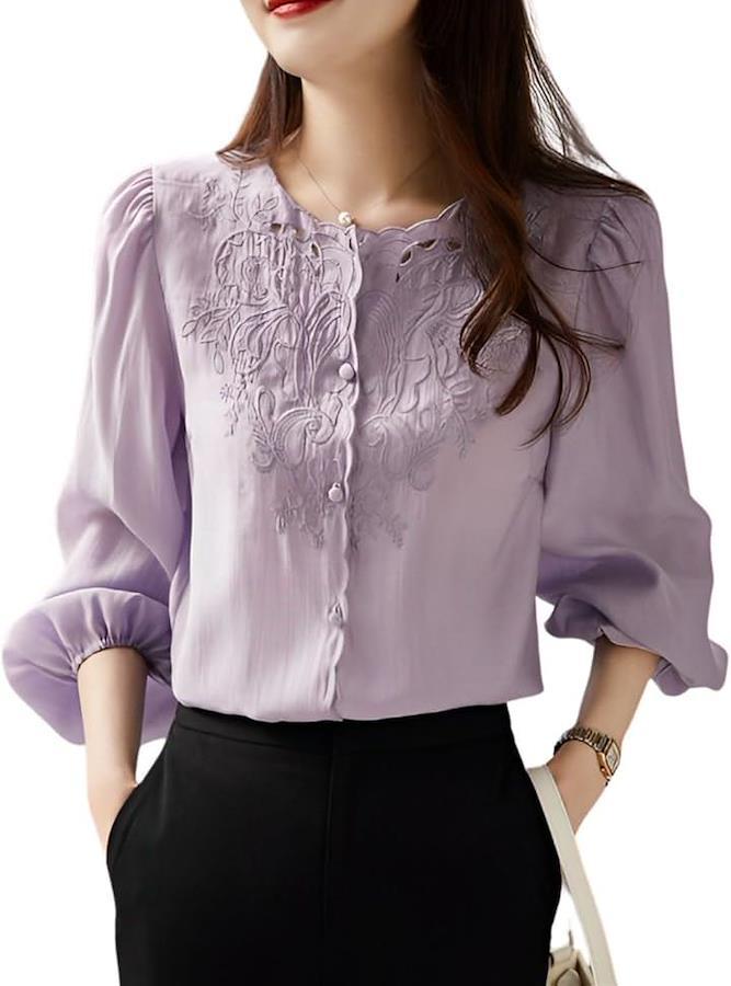 「華やかな刺繍xエレガント」トップス ブラウス シャツは、春や秋にぴったりの上品でフェミニンなレディースアイテムです。