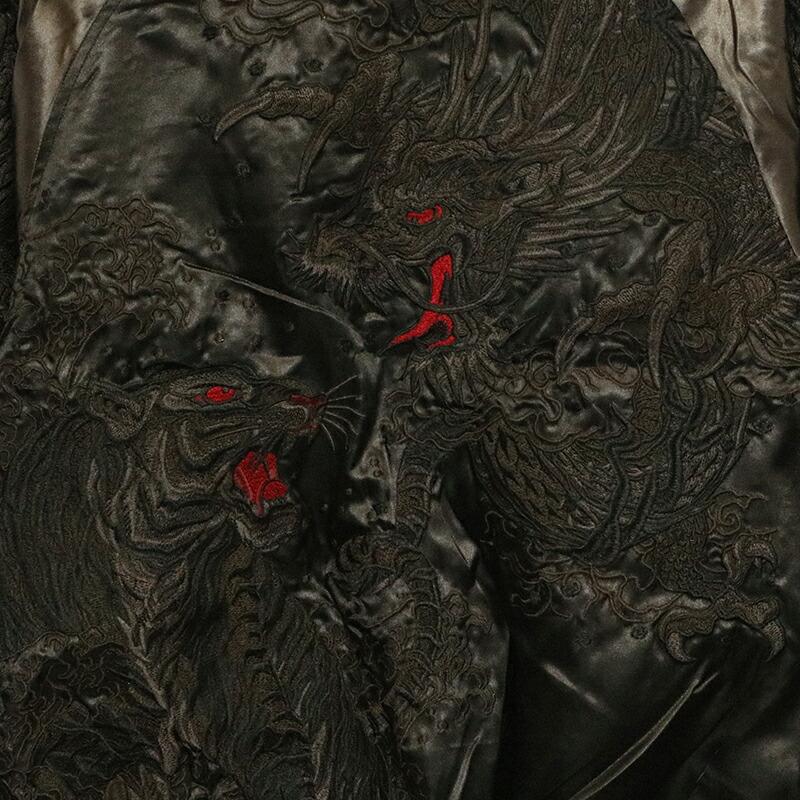 ド迫力な構図で龍虎を刺繍で落とし込んだスカジャン。