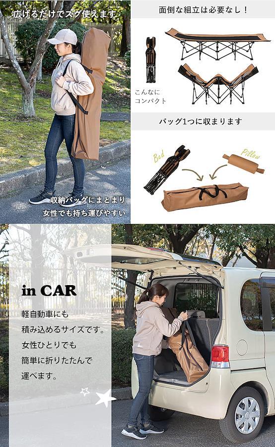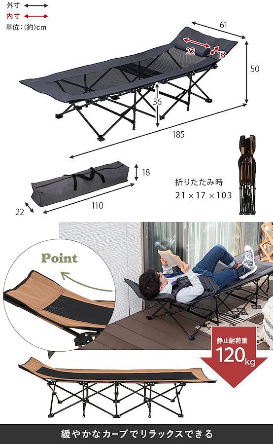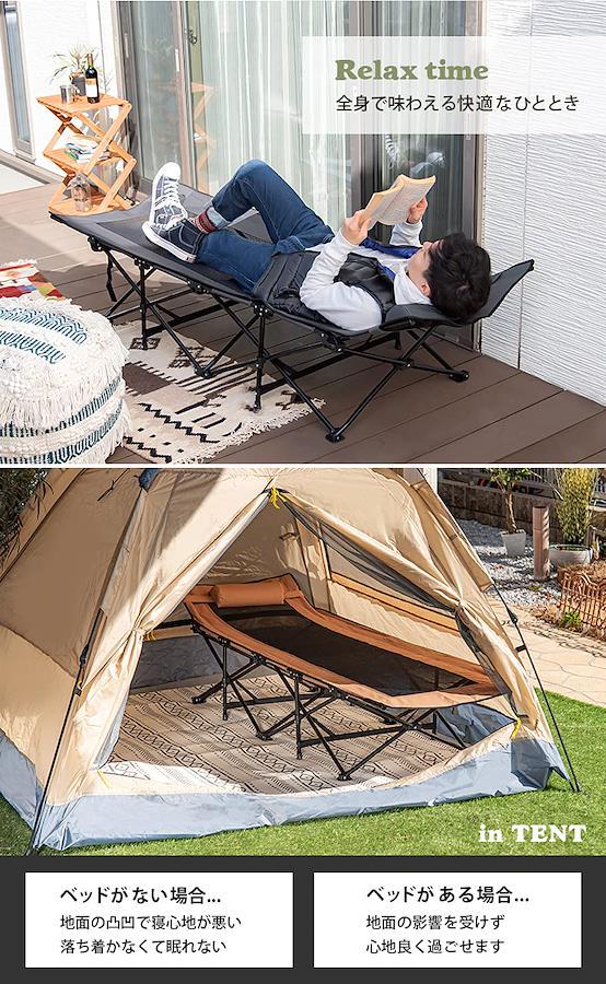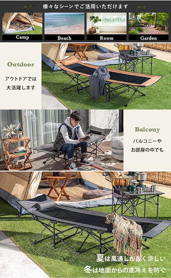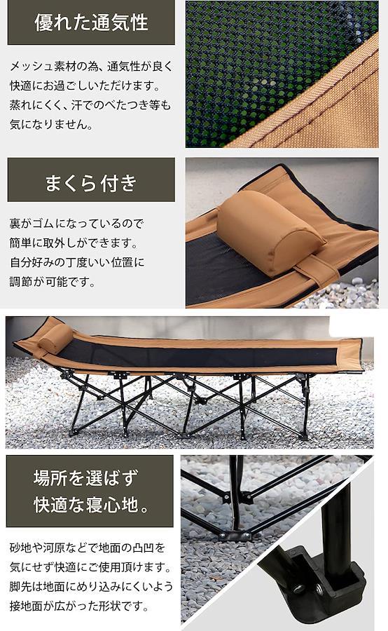 【組立不要!広げるだけで簡単設置】専用の収納バッグから取り出して広げるだけすぐに使えるコンパクトキャンプコット。折りたためば(約)奥行18cm×幅22cmとスリムになり持ち運びにも便利。【優れた通気性&快適性】メッシュ素材の為通気性が良く、蒸れにくい床面は汗でのべたつきを軽減してくれます。専用の位置調節可能なまくらも付属しており、快適にリラックスして頂けます。【テント泊の底冷え防止に】テント内での就寝は底冷えで想像以上に冷えてしまうもの。コットで地面からの距離を取ることで快適な睡眠を確保できます。