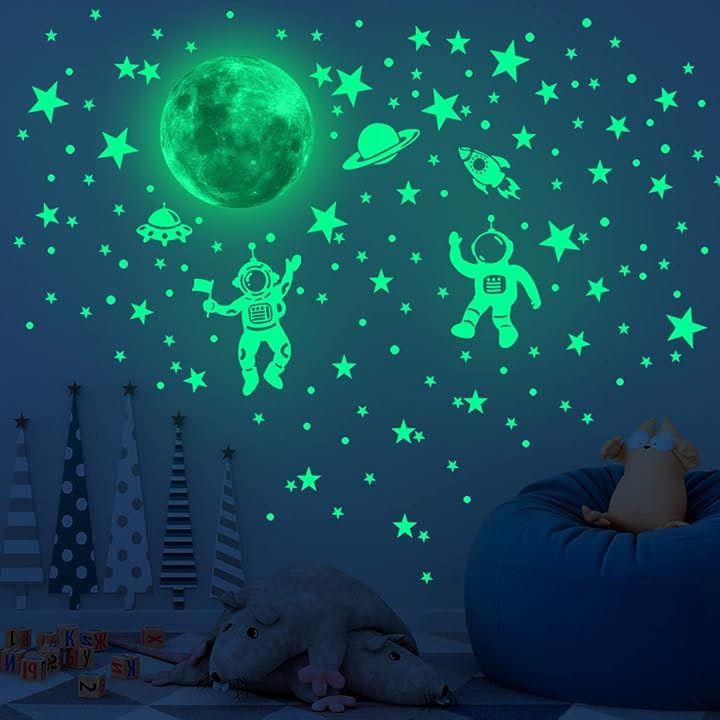 「幻想的な星空体験」星や月、宇宙飛行士のデザインが含まれており、部屋全体をまるでプラネタリウムのような幻想的な空間に変えます。