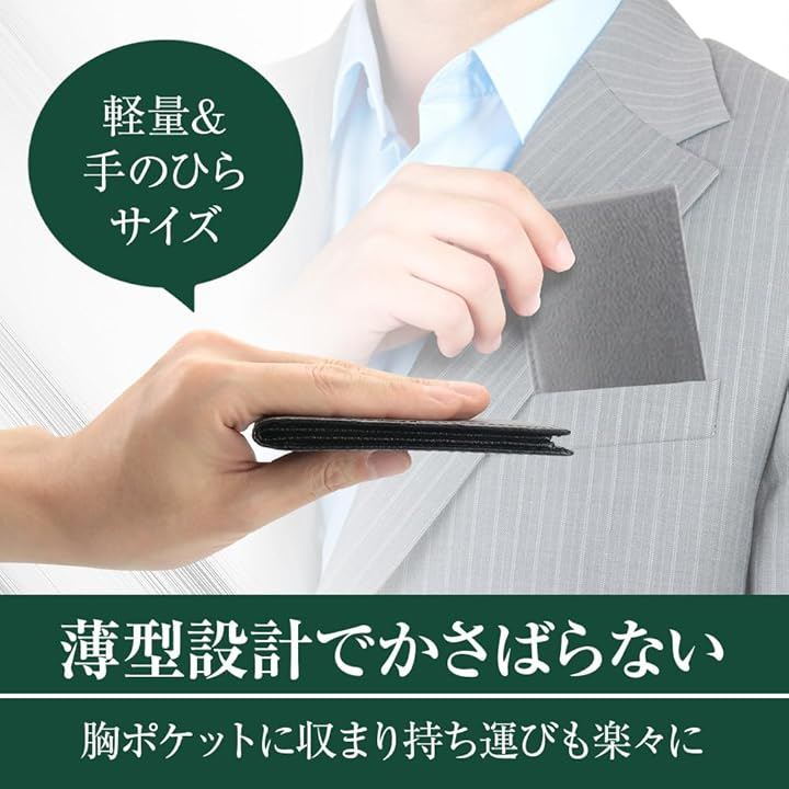 スーツの胸ポケットやズボンのヒップポケットにもすっぽり入る薄型の免許証ケースです。