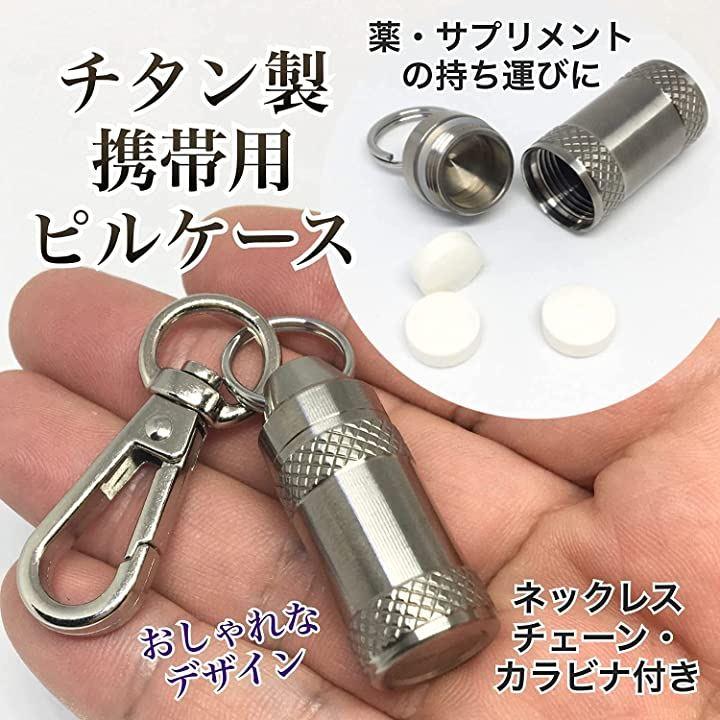 ・「セット内容」チタン製ピルケースx1、キーリングx1、カラビナx1、316Lサージカルステンレス製*チェーン(70cm)x1、防水用ゴムリング(予備)x2