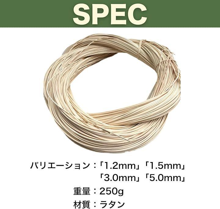 「商品仕様」サイズ1個 : 幅約5.0mm、長さ約20cm(重量 : 250g)/ 材質 : ラタン *バリエーションは、「1.2mm」「1.5mm」「3.0mm」「5.0mm」がございます。