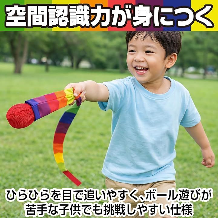 「投げる おもちゃ 運動」 ひらひらを目で追いやすく、ボール遊びが苦手な子供でも挑戦しやすい仕様。