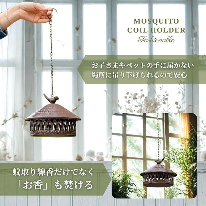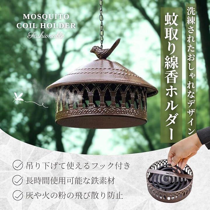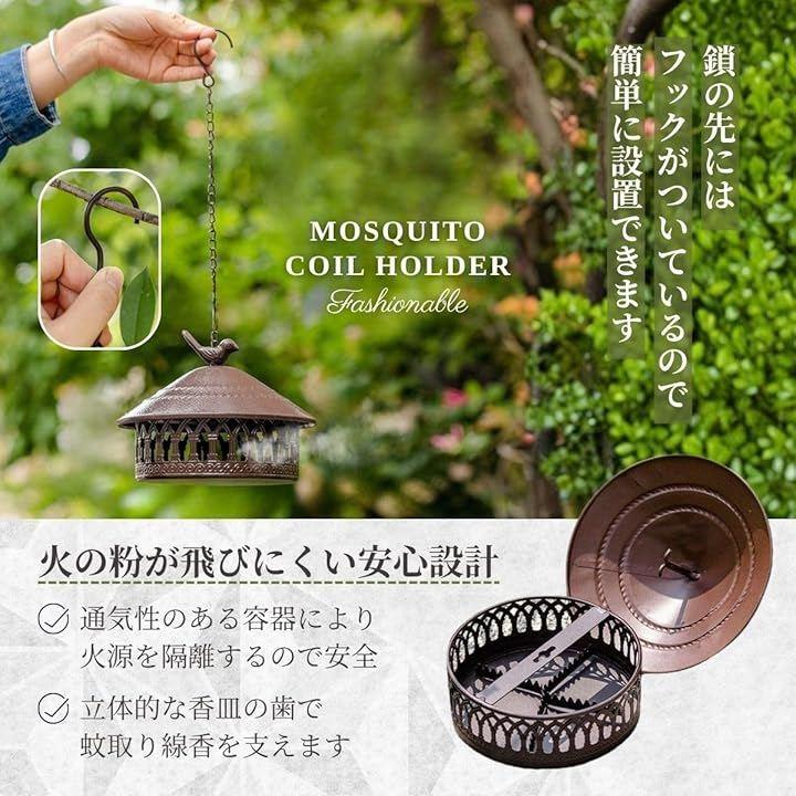 「簡単に使えるデザイン」 火をつけた蚊取り線香やお香をそのまま置くだけで使用でき、ホルダーを差し込む手間が不要です。
