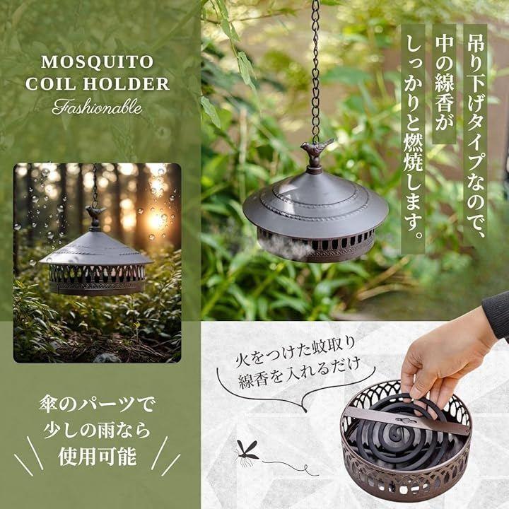 暮らしの幅が広がる一台」 吊り下げタイプの蚊取り線香ホルダーは、リビングや寝室、玄関などの室内から庭・ベランダ・キャンプ・バーベキュー・畑作業まで、屋内外問わず幅広く活躍します。