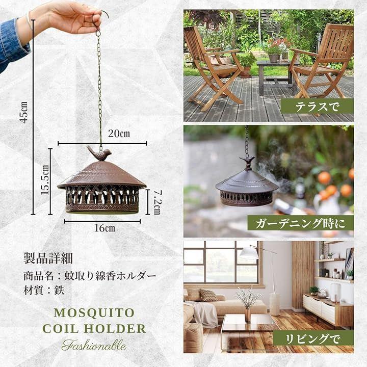 「商品内容」蚊取り線香ホルダーx1「商品仕様」サイズ:約20cmx15.5cm、全体高さ45cm、材質:鉄