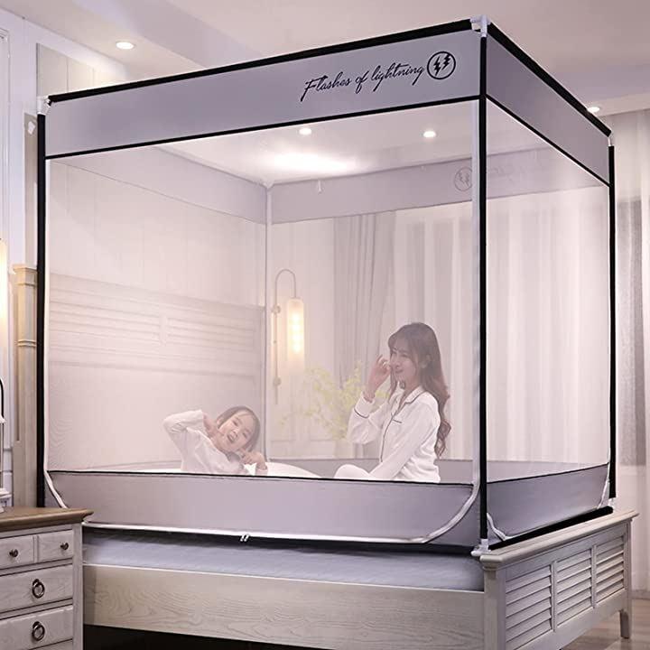 「余裕なスペース&組み立て簡単」従来の吊り下げるタイプの蚊帳とは違い、xinxin-home蚊帳は折りたたみ式デザインを採用して、簡単に組み立てることが出来るので、女性でも楽々です。
