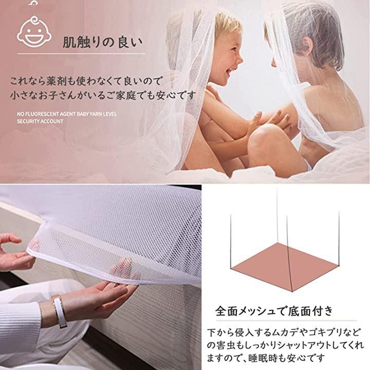 素材:蚊帳は丈夫なポリエステル素材、レース生地を採用して、化学的な臭気や有害物質は含まれていません。