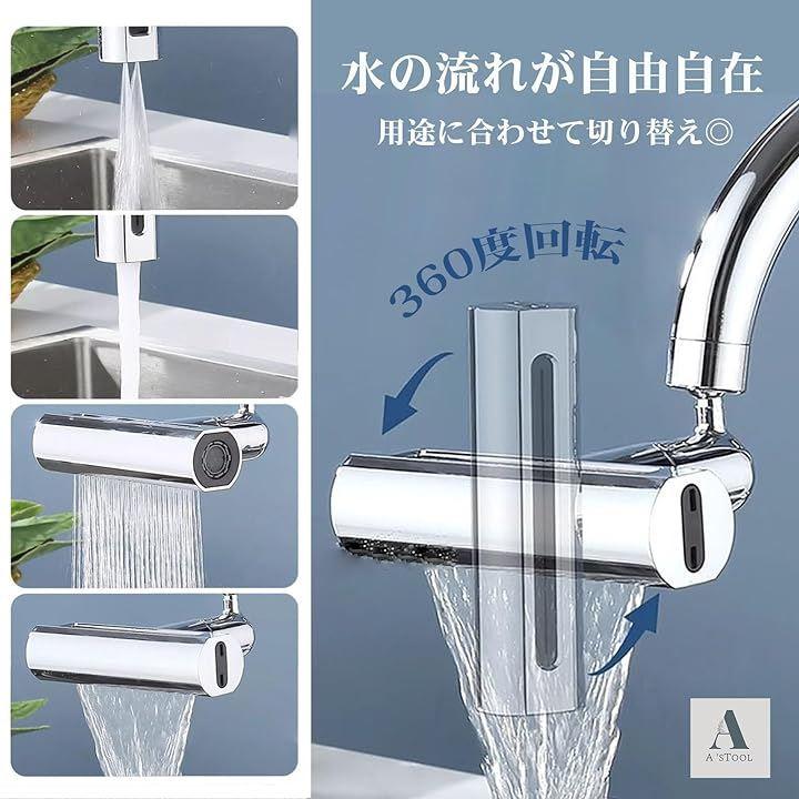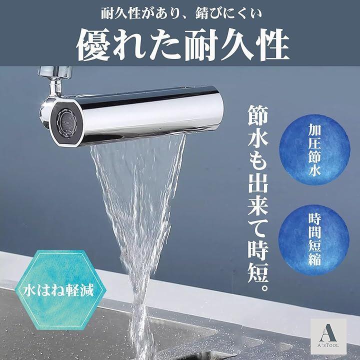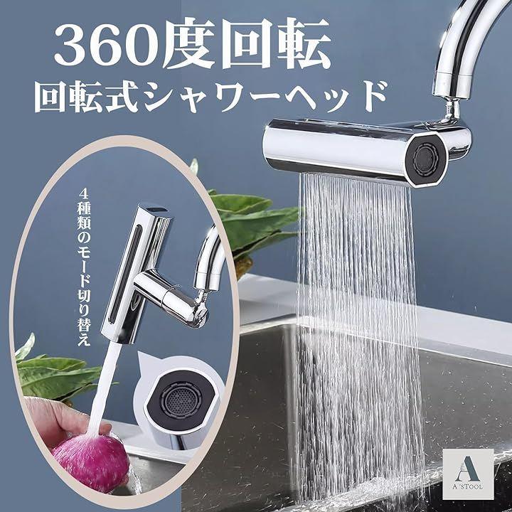 「4種類の水流モード切替が可能」(1)滝水モード:大きな面積のシャワーがまるで滝の様に洗い物を流すことができます。