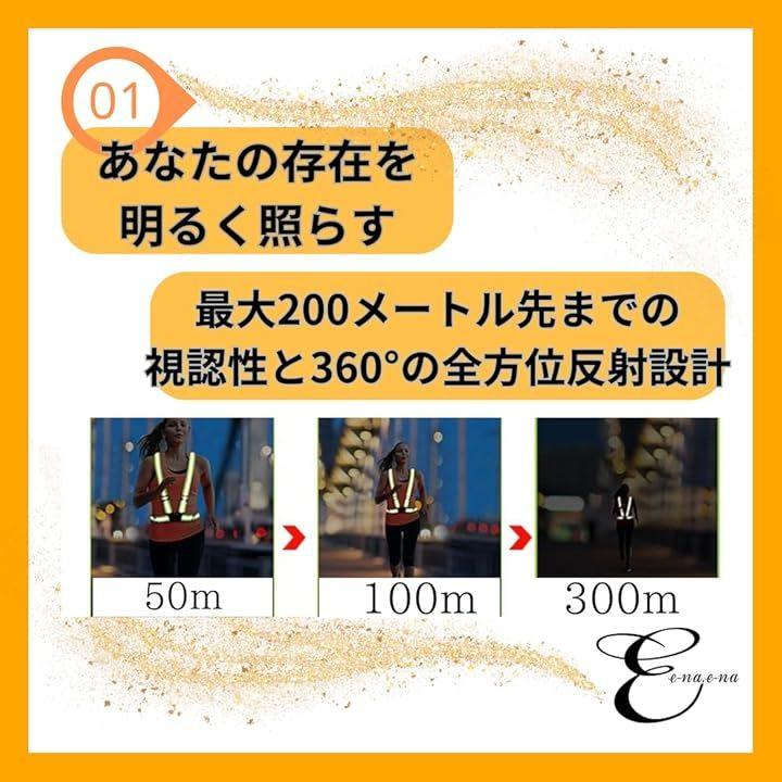 「360°の反射性能で、最大200メートル先まで明瞭に視認可能」夜間のアウトドア活動や作業での安全をサポートする反射ベスト。