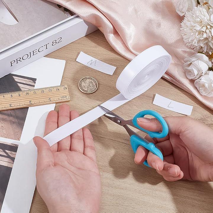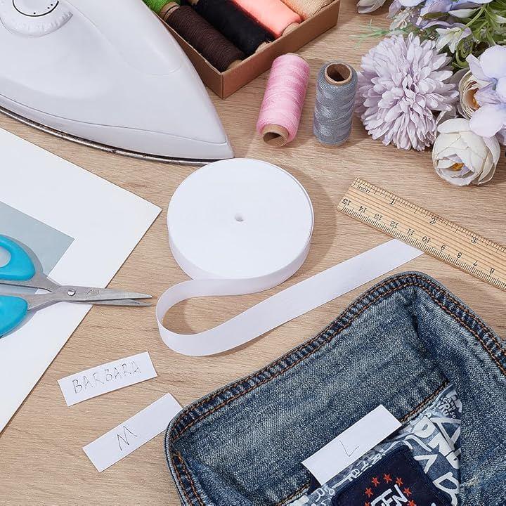使いやすい:20mx1.6cmの白いテープから好きな長さのネームラベルをカットし、衣類に貼り付けて、18~20秒間アイロンをフルパワーでかけるだけです。