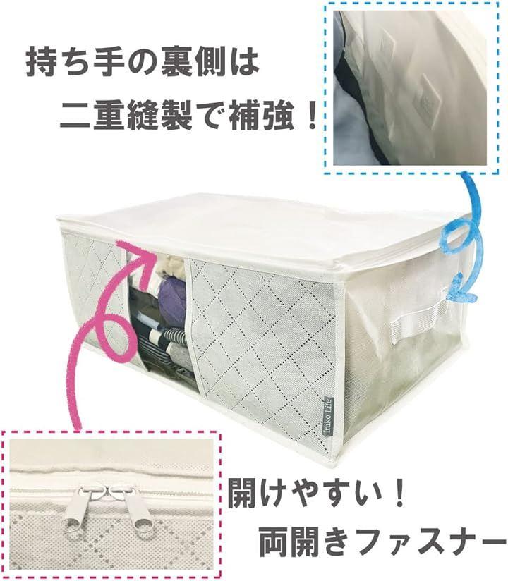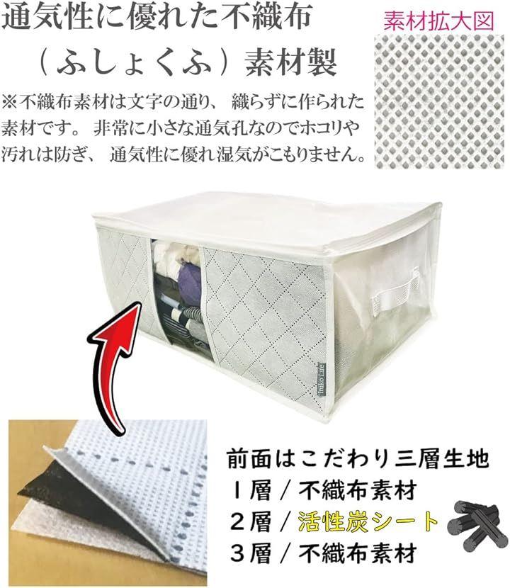 サイズ(収納ケース1枚あたり):約幅50x奥行35x高さ20cm 重量:100g 素材:ポリプロピレン不織布/ポリエチレン *洗えません 生産国:中国