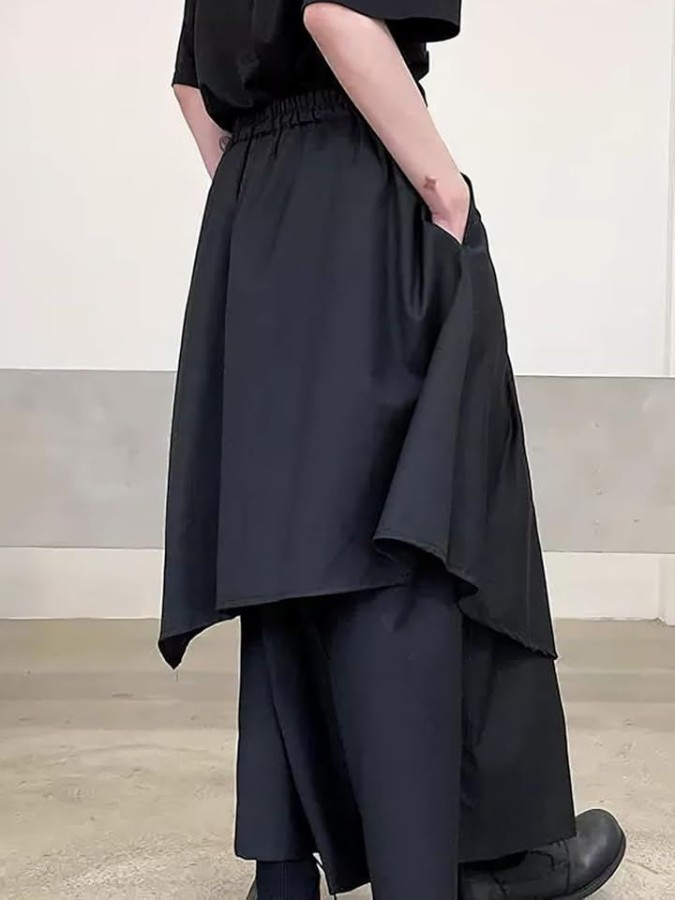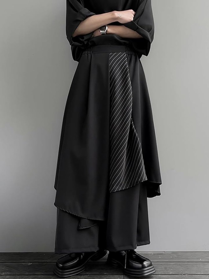 スカートのように見えるレイヤード構造で、立体的な袴風シルエットを演出します。