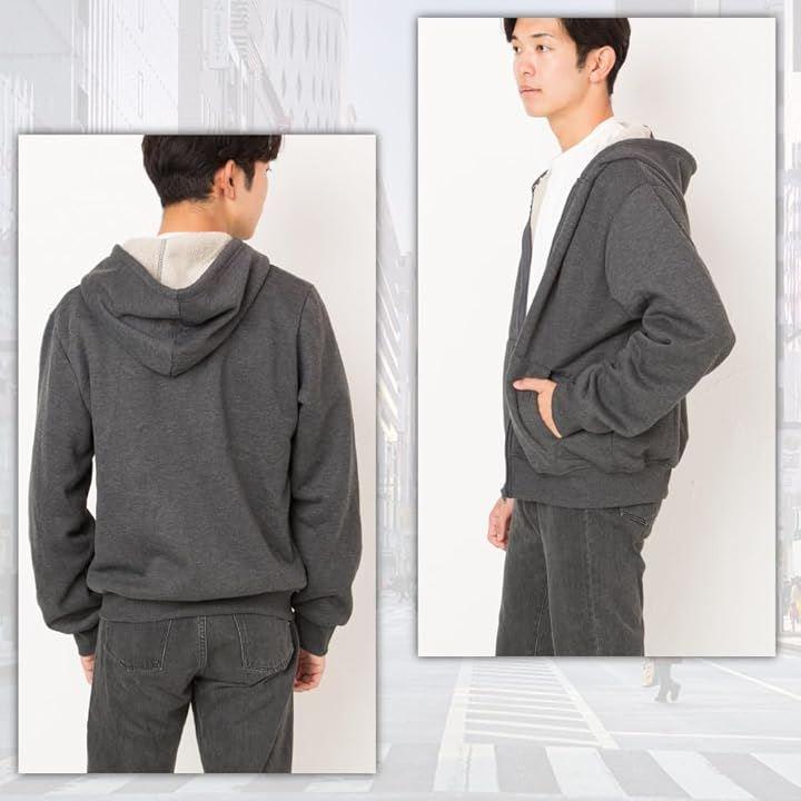 Fleece-lined sweatshirt, trainer, hoodie, men's, long sleeve, hooded, room wear, plain, top, loungewear, loose, fluffy, comfortable, autumn, winter, L size