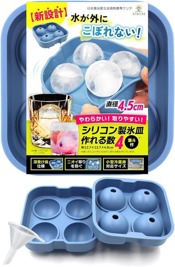 「丸い氷が作れる」直径4.5cmの丸氷を簡単に作れるシリコン製の製氷皿。