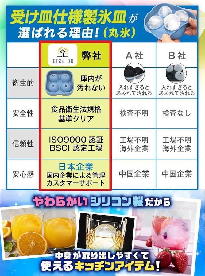 「食品衛生法検査済」日本の規格に適合した安心してお使い頂ける製氷皿です。