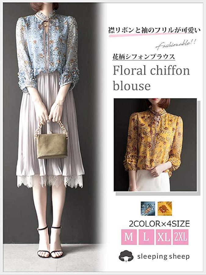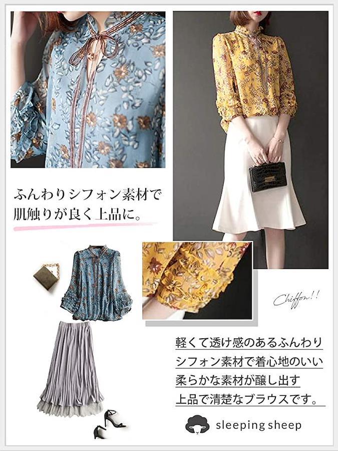 ・軽くて透け感のあるふんわりシフォン素材で肌触りが良く上品で清楚なブラウスです。