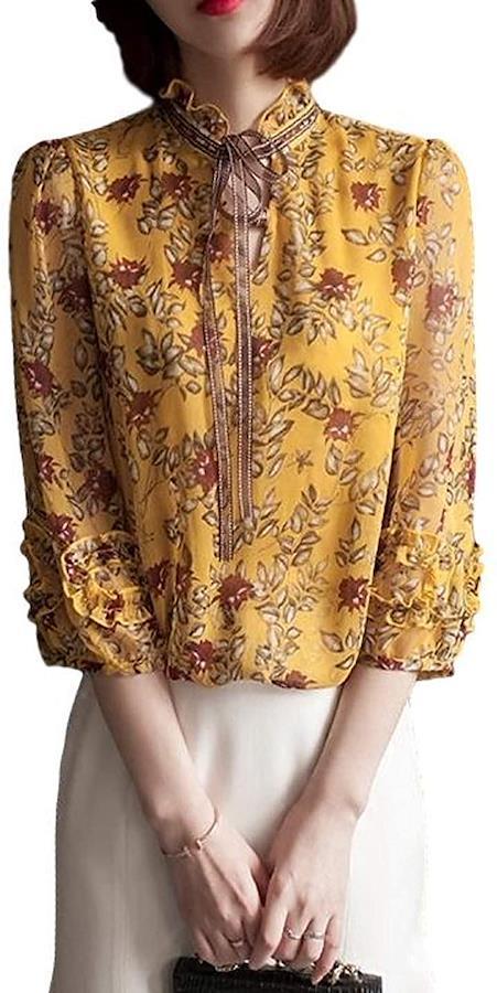 軽くて透け感のあるふんわりシフォン素材で肌触りが良く上品で清楚なブラウス