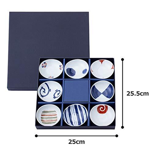 Saikai Pottery Hasami Ware Somenishikie Variation Small Plates 8 Pieces Diameter 8cm Tableware Set Small Plates Gift Box Present Wedding Gift Lucky Charm Wide Ending Japanese Tableware Dishwasher and Microwave Safe Made in Japan 13307