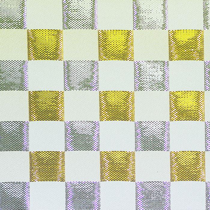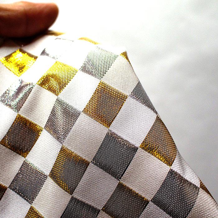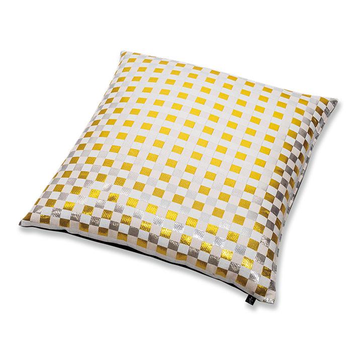 古墳時代の埴輪にも装飾されてるこの模様を「石畳や霰(あられ)」と呼んでいましたが、江戸時代中期に歌舞伎役者《佐野川市松》が袴の柄に使ったことで女性の間で大流行し【市松】が通り名となりました。2色の正方形が交互に配置され永遠に続くことから「繁栄」の意味を持つ吉祥紋様で、「子孫繁栄や事業拡大」などの縁起の良い柄として使われてきました。金糸・銀糸で織り上げられた煌びやかな織り地は京都が誇る【西陣の紋織】で、重厚感がありしっかりとした風合いを持ちインテリアとしてお部屋に華やかさを添えてくれます。表側は西陣の紋織を、裏側は黒無地で作りました。【カバーサイズ】 横55㎝×縦55㎝【生地素材】 柄:ポリエステル100% 無地:ポリエステル65%・綿35%この商品はカバー(ファスナー加工)のみです。中わたは別途ご購入ください。またカートの購入可能数より多い数をご希望の場合はご相談ください。
