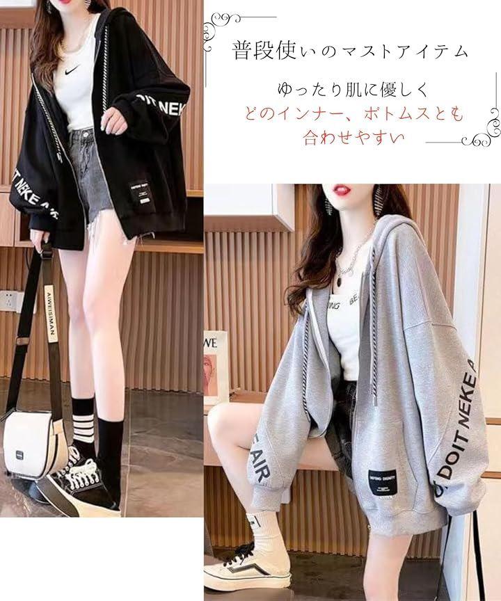 「概要」ジップパーカー レディースは、ゆったりとしたオーバーサイズが魅力のジップアップタイプ。