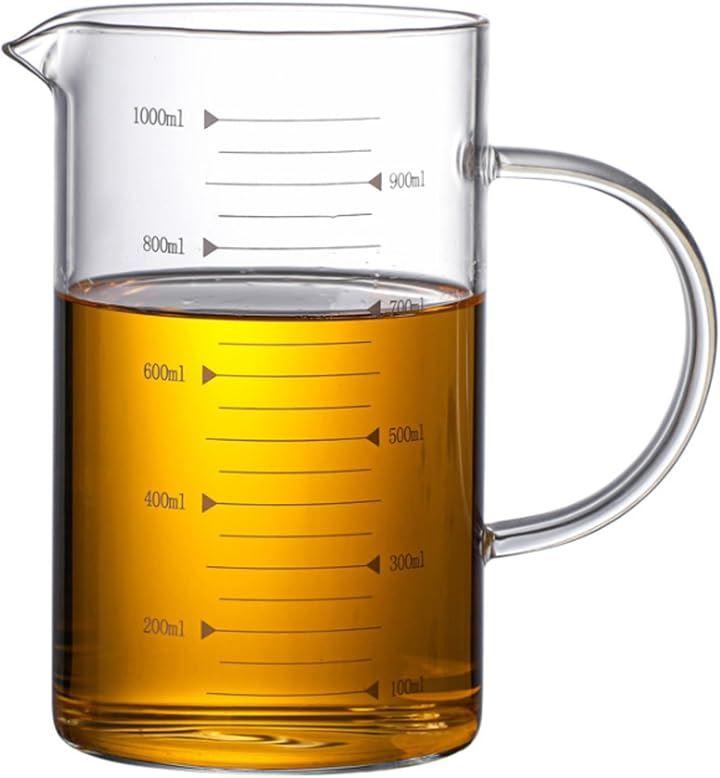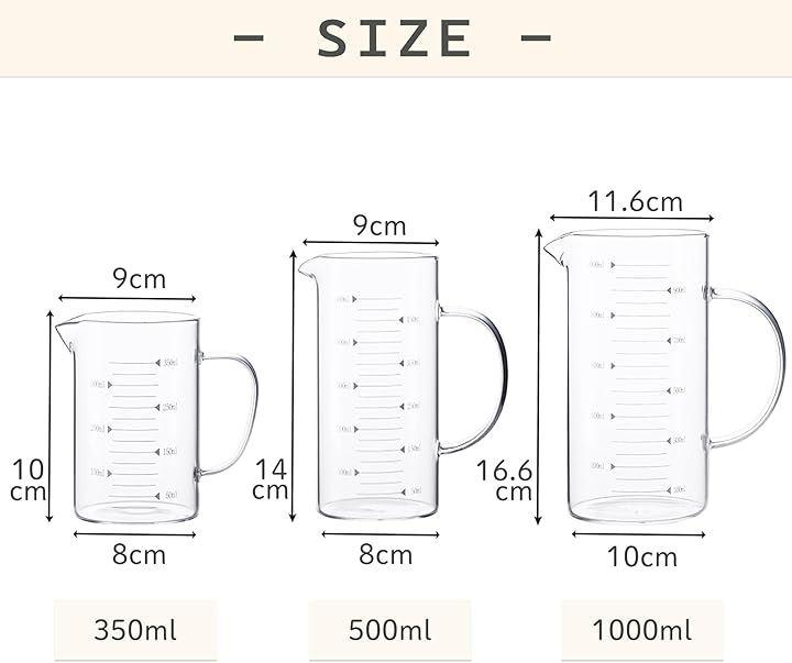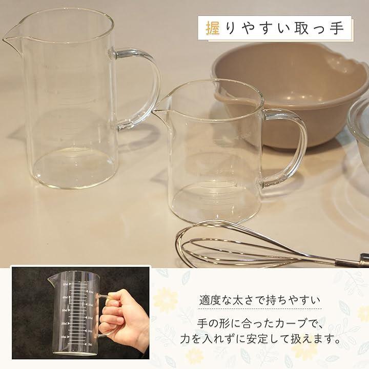 「透明ガラスで使いやすい仕様」 目盛り付きのデザインと持ちやすい取っ手により、正確で使いやすい計量が可能です。