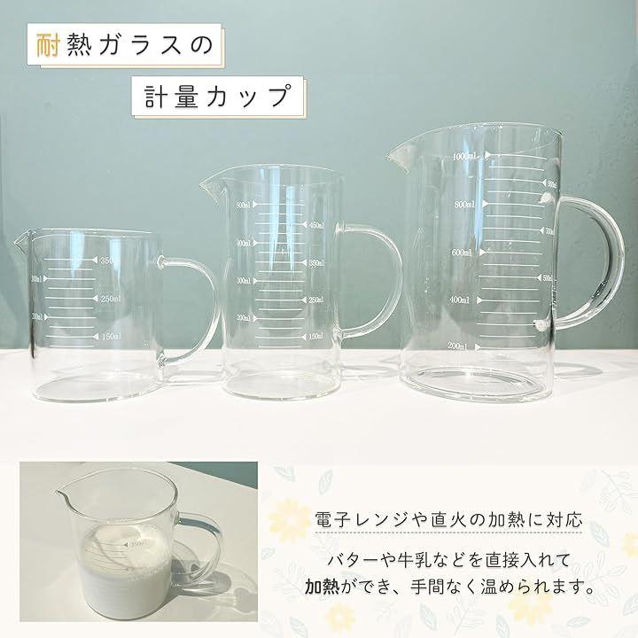 「耐熱ガラス計量カップ」 高品質素材を使用した計量カップは、直火や電子レンジでも問題なく使えます。