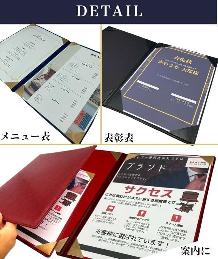 ・賞状カバー・感謝状・卒業証書などの贈り物や保管に ・店舗案内・会社紹介・案内状・重要書類のファイルとして ・レストラン・飲食店等のメニューブック用として 軽くておしゃれな2つ折りタイプのA4カバー