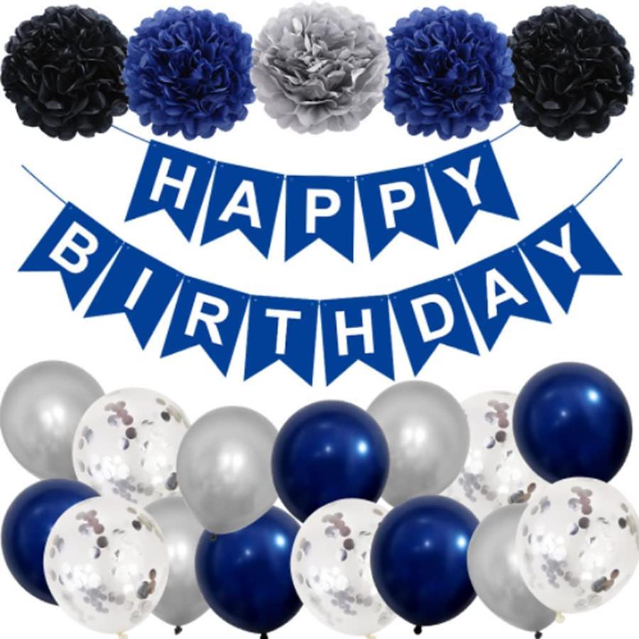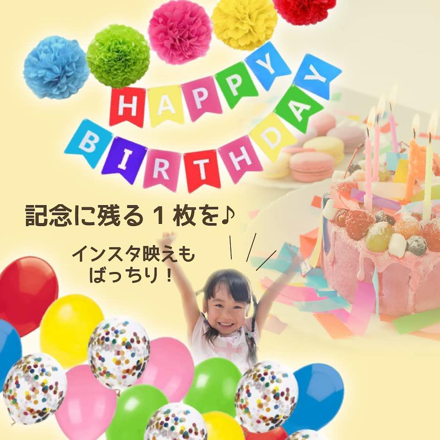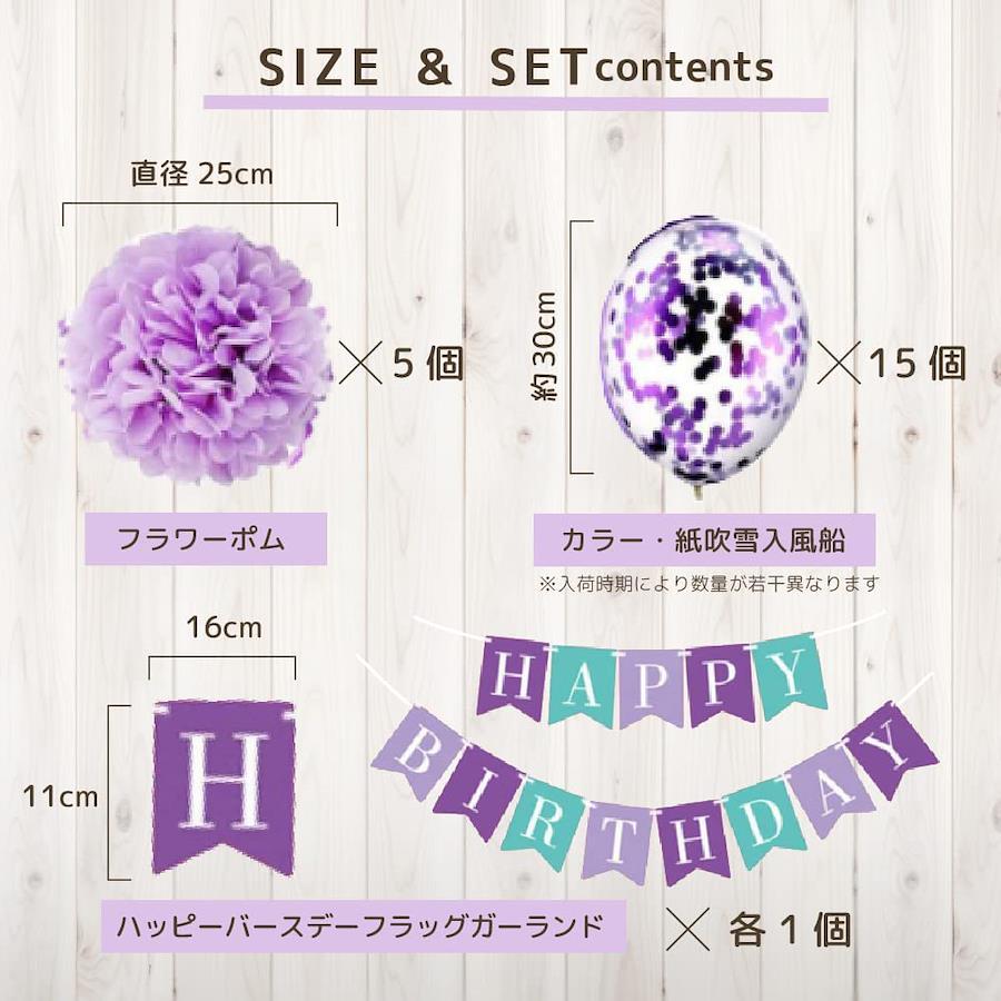 誕生日のお祝いに、素敵な飾り付けを。フラワーポム、風船、ハッピーバースデーガーランド、の3点セットです。