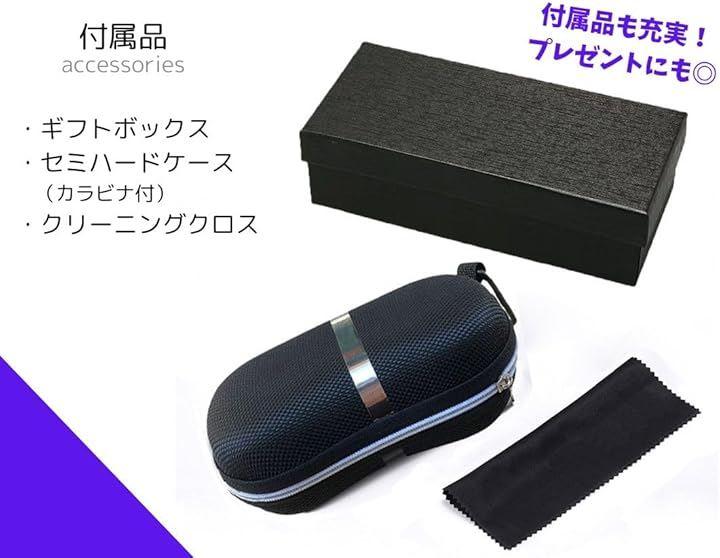 「充実の付属品」 サングラス本体には、セミハードケース、眼鏡クロス、ギフトボックスが付属します。