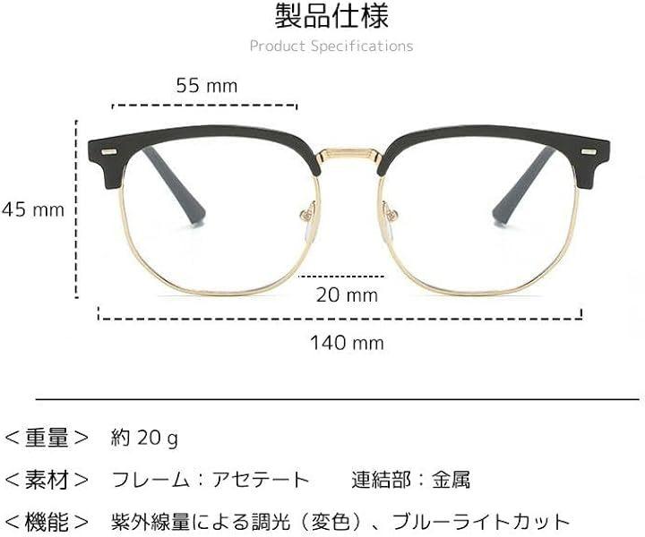 「サングラス仕様」 横幅:約14cm 縦:約4.5cm レンズ幅:約5.5cm ブリッジ幅:約2cm 重さ:約20g 用途:室内でのパソコン、スマホ、屋外でのドライブ、旅行、海水浴、フェス、キャンプなどのレジャーや、自転車、釣り、ウォーキング、ゴルフなどのスポーツにも。