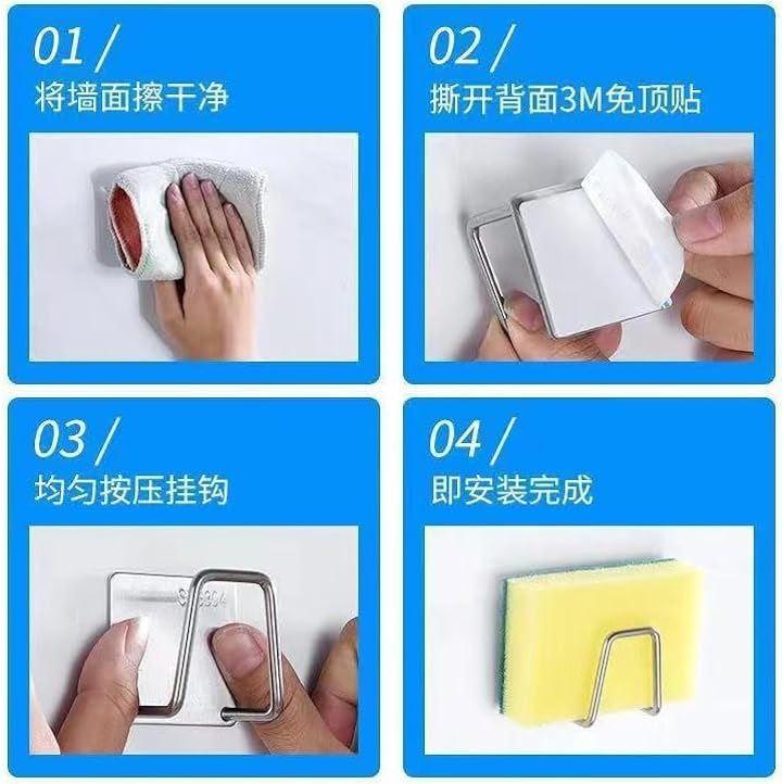 「錆びない、水に強い」高品質の304ステンレス鋼を使用しているため、この粘着フックは防水性と錆びにくさを備え、長い耐用年数があります、また、フックの角は滑らかで、衣類や手を傷つけることがありません。