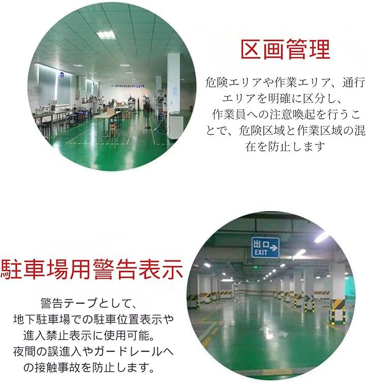 工場、工事現場、駐車場、段差のある場所、ペンキ塗りたての箇所、公園の遊具の修理箇所、店舗などのソーシャルディスタンスの注意喚起、立ち入り禁止場所などさまざまな場所でお使いいただけます。
