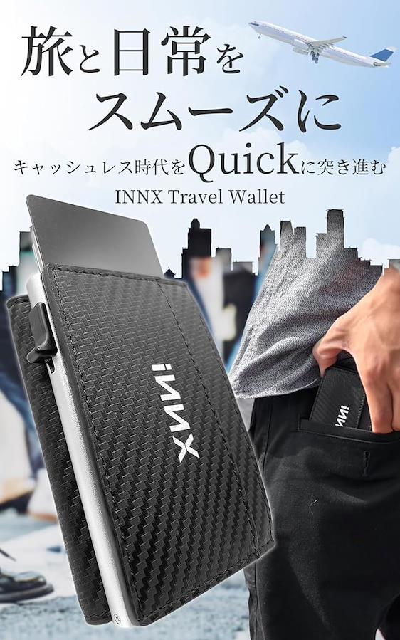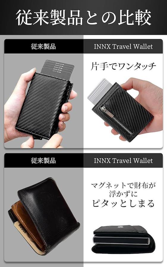 海外旅行や移動時に安全にカード情報を守るカードケース付きの財布です。