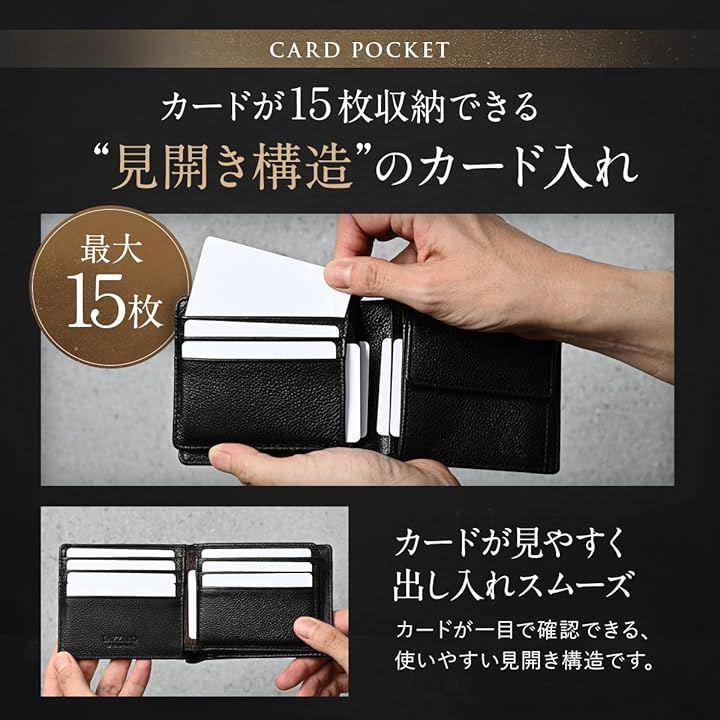 カードポケットx15枚:見開き構造で一目でカードを確認でき、取り出しやすさも抜群 お札入れx2か所:仕切り付きで紙幣の分類や整理に便利な2層構造 小銭入れ:中身が見やすいブラウン裏地を採用し、出し入れしやすいデザイン フリースペース:小銭入れ裏に配置し、レシートやチケットの一時保管に最適 日常使いに必要なアイテムをすっきり収納しながら、スマートに持ち運べるサイズ感です。