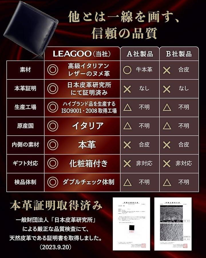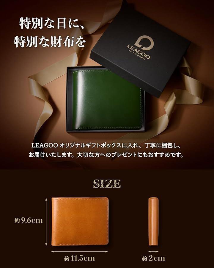 「特別な日に、特別な財布を」LEAGOOオリジナルギフトボックスに入れ、丁寧に梱包し、お届けいたします。