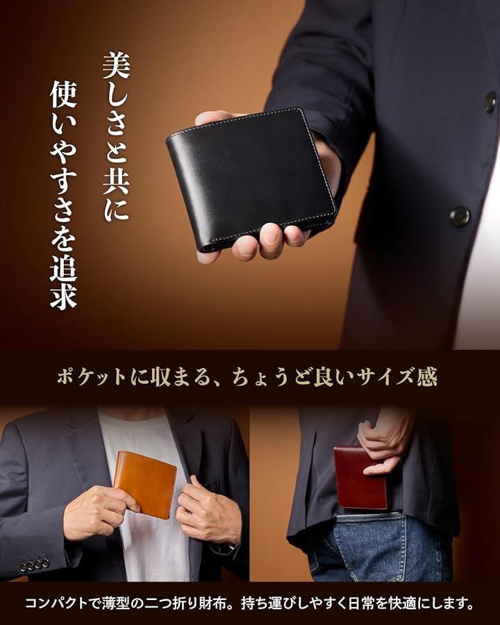 「美しさと共に使いやすさを追求」コンパクト&薄型で、ポケットに収まりやすいちょうど良いサイズ感の2つ折り財布。