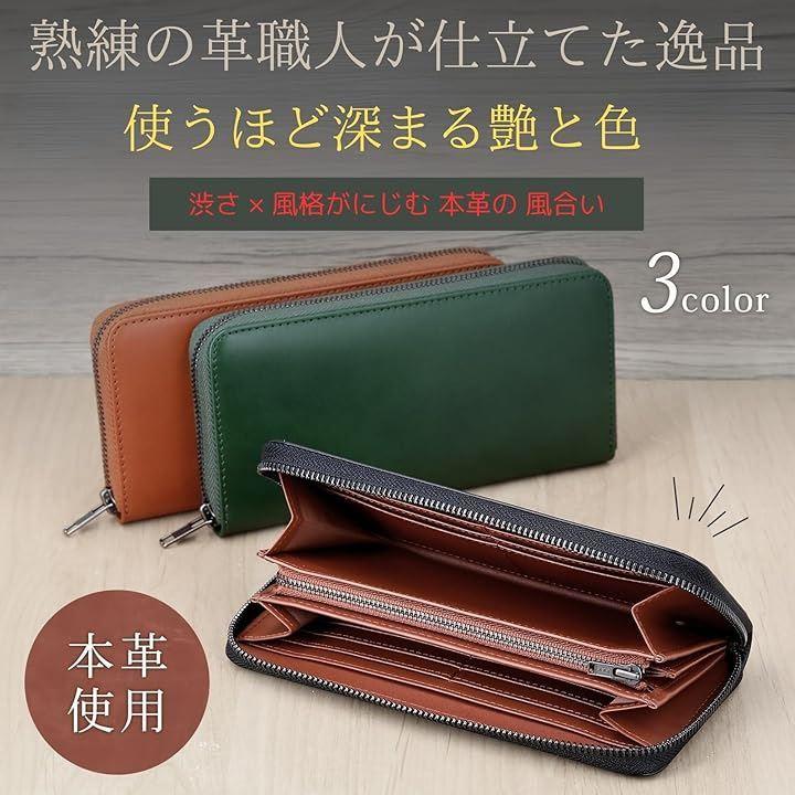 「選べる3色展開|緑・黒・ブラウンで好みに合わせて」 本商品は「緑の財布」「財布 黒」「ブラウンレザー」の3色を展開。