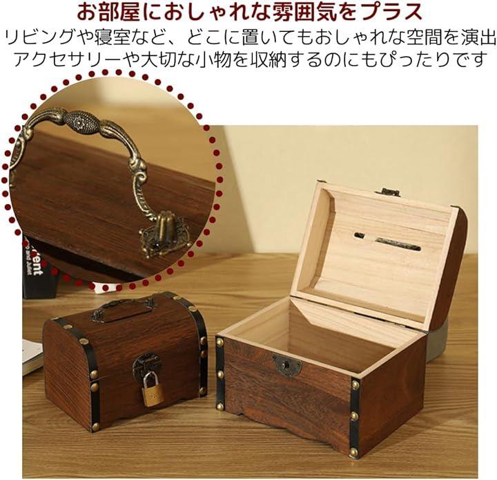 「インテリアにもなるおしゃれな貯金箱」レトロな小物やアンティーク風のデザインが好きな方にぴったりの、木製の貯金箱。