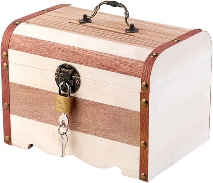 南京錠と鍵が付属したこの宝箱なら、小銭やお札をしっかり守ります。